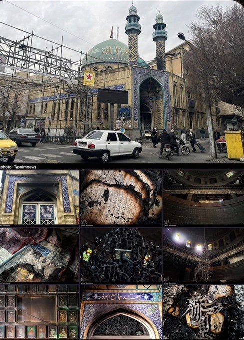 On January 11, images showed fire damage at Abuzar Mosque in southwest Tehran. State media described this as “terrorists burning a mosque.”