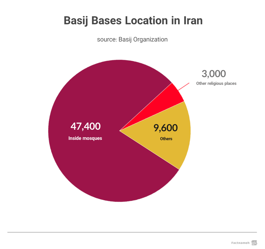 Based on official Basij statistics reviewed by Factnameh, nearly 50,000 Basij bases are located inside mosques across Iran.
